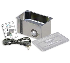 Аппарат изготовлен из нержавеющей стали. Внутри есть коллектор для сбора конденсата, препятствующий загрязнению рабочей среды. В комплекте кабель питания, дренажная трубка, держатель и полка для лотков, лоток для инструментов.