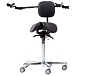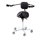Эргономичный стул-седло для работы с микроскопом помогает поддерживать правильную осанку и равномерно распределять нагрузку на тело, снижая усталость при длительном сидении.