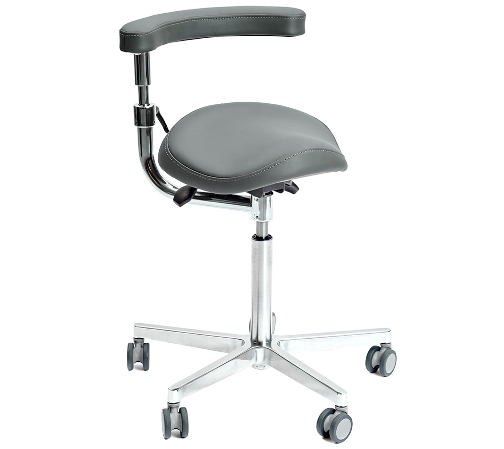 Стул-седло помогает поддерживать правильную осанку и равномерно распределять нагрузку на тело, что снижает усталость при длительной работе. Абдоминальный упор, вращающийся на 360°, служит удобной опорой для локтей и спины.