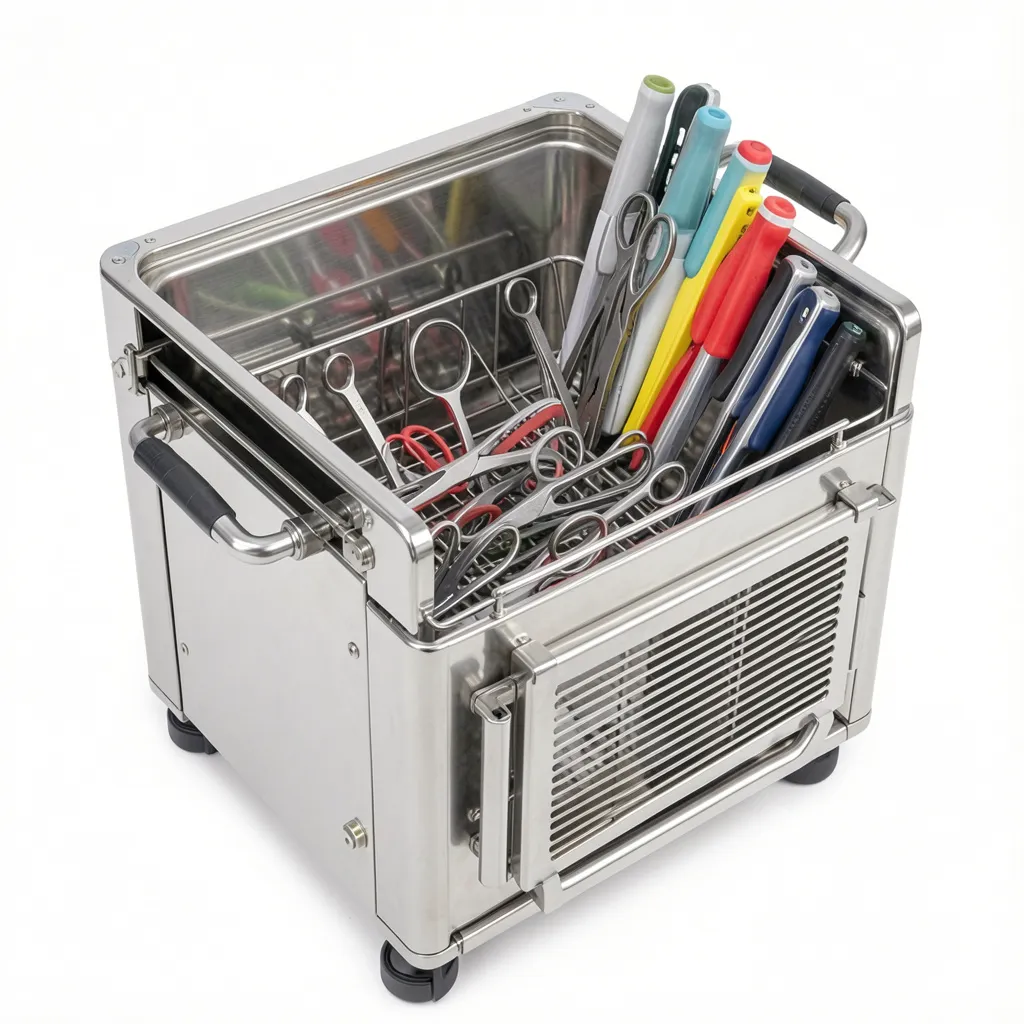 Помимо функции размещения, контейнер выполняет защитную роль, предотвращая механические повреждения инструментов во время стерилизационного цикла. Это особенно важно для сохранения точности и долговечности мелких и чувствительных стоматологических инструментов.
