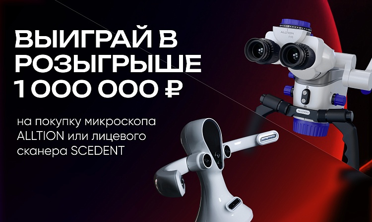 Не пропустите громкий розыгрыш на Дентал Салон 2026, который пройдет 21-23 апреля в «Крокус Экспо» на стенде СТОМАРТ. Мы разыграем два сертификата по 1 000 000 рублей на покупку оборудования — микроскопа ALLTION и лицевого сканера SCEDENT.